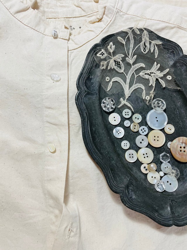 全て手作業での1点物のリメークになります。 メンズのブルガリア軍のレプリカグランパシャツをリメイクしたプルオーバタイプのシャツです。 フランスのヴィンテージボタンをコラージュしてリメイクした1点物になります。 ゆったり着る感じで、どんなシーズンにも着用出来ます。 メンズのMのサイズ感の為、袖が長めなので捲って着用ください。 色違いでご購入される方も多い、使える期間の長い人気のグランパシャツです。 色 kinari / kuro サイズ one(M表記) 着丈 68cm 肩幅45cm バスト 60cm幅 AH幅25cm 袖口10.5CM幅 袖丈57cm えり高さ2.5c 裾幅65cm幅 こちらの黒の商品は製品染めの為 上記サイズは1点づつのCMが多少の前後をします事を 予めご了承下さい。 shirt生産国 中国 remake 日本 ※この商品はフランスのビンテージボタンを使用した手作業による一点もののリメーク商品になります。 サイズ感が一点一点、若干異なりますので予めご了承下さい。 また、デリケートな商品になりますので、ネットに入れてクリーニング仕上げの洗濯モードか、中性洗剤で手洗いでお洗濯ください。 発送がかなりずれる場合には必ずご連絡させて頂きますので 予めご了承くださいませ。